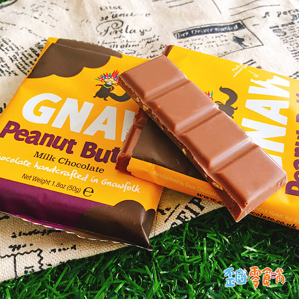 - 以穿戴各種服飾的可愛小松鼠為 Logo,英國巧克力品牌 Gnaw 以吸睛可愛的包裝、優質創新的巧克力製品聞名於 24 個國家。這款 Mini Bar 巧克力含有香脆花生碎粒,濃順的花生醬完美融入巧克力中,咬下可感受到牛奶、巧克力、花生交織出的幸福滋味,整體甜而不膩,吃了一口絕對還想再續一塊~