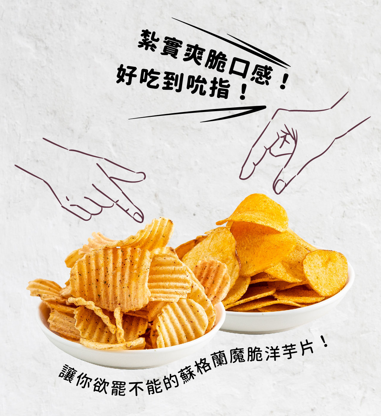充分運用黑白照片加上彩色薯片與食材的搭配,展現泰家特有的復古詼諧英倫風!讓人對他們品牌留下深刻印象!