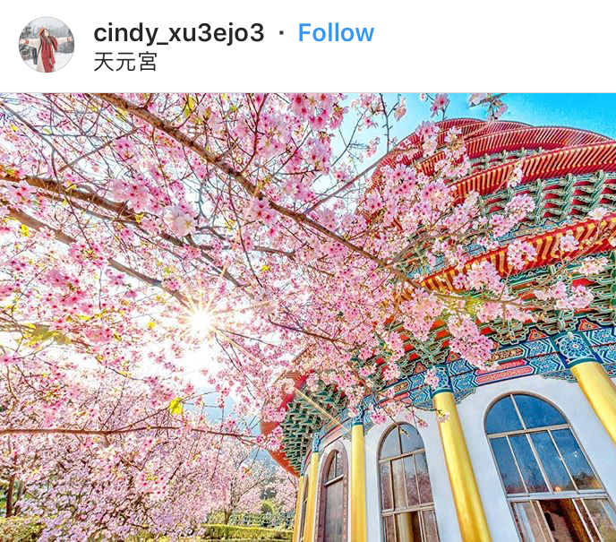 景點資訊:最大的特色為天壇造型,與其他景點不同處在於天元宮的櫻花分為三色櫻以及吉野櫻兩種,因此花期也有所不同,三色櫻的花瓣有粉白、粉紅、暗紅三種顏色的變化,花期大約在2月初~2月中;而吉野櫻的花期則在3月份。